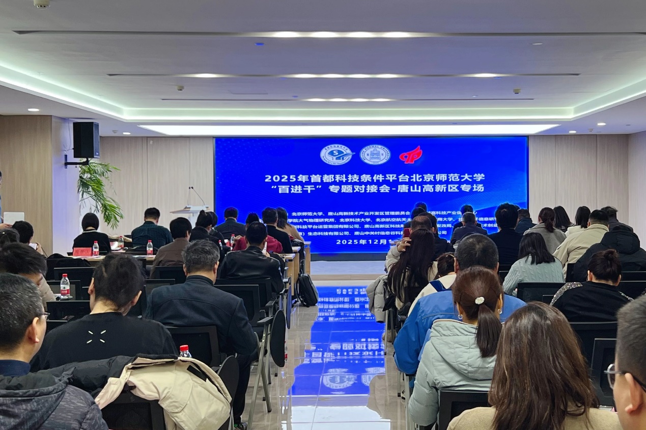 2025年12月19日,“2025年首都科技条件平台北京师范大学‘百进千’专题对接会—唐山高新区专场”在唐山高新技术产业开发区成功举办。会议由北京师范大学(首都科技条件平台开放单位)联合唐山高新技术产业开发区管理委员会和中关村高科技产业促进中心共同主办。来自唐山高新技术产业开发区政府、北京市科委中关村管委会、北京师范大学、北京师大科技集团、中国科学院大气物理研究所、北京科技大学、北京航空航天大学、北京工商大学、北京量子信息科学研究院以及唐山地区53家企业的代表60余人参加了会议。北京师范大学实验室安全与设备管理处处长和分析测试中心主任左锐、北京市科委、中关村管委会高促中心部门负责人毛振芹、唐山高新区管委会副主任安海涛、唐山高新技术创业中心主任曹雅静、中国科学院大气物理研究所公共技术中心主任辛金元、北京工商大学实验室管理处处长康智勇等出席了会议。会议由北京师范大学首都科技条件平台工作负责人常崇艳主持。